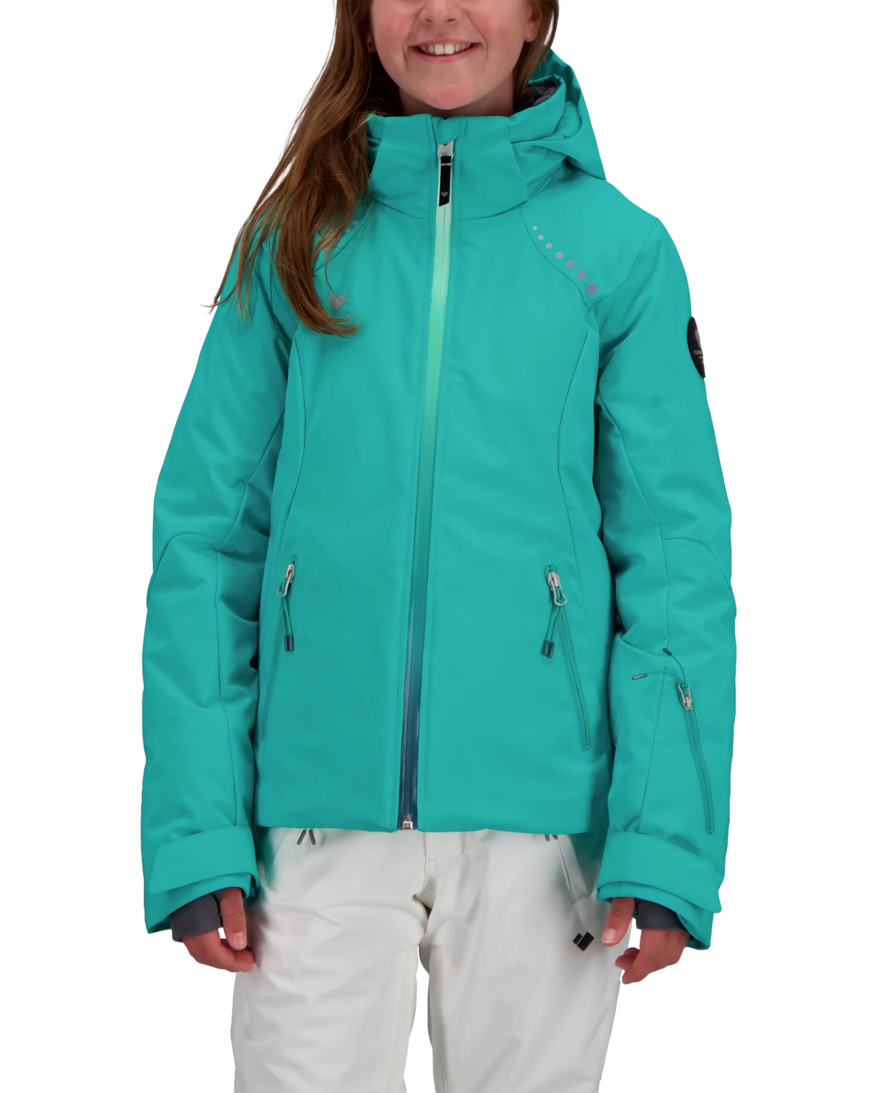 A sporty, short waisted jacket, with innovative features that separate it from the crowd. Its two-way stretch is laminated with our HydroBlock Pro 15,000mm waterproof-breathable technology and features 140gm of insulation. Critical seam sealing, and Snap-Away water-resistant powderskirt prevent any water intrusion. Full-Motion™ stretch articulation enhances the Leia’s pleasing fit. An easy access interior electronics pocket with cord routing guide keeps you well-connected. YKK® Prifa® Ombre front zipper adds a stylish touch. The Leia’s active fit is ideal for outdoor activities as well as hanging out with friends in town.