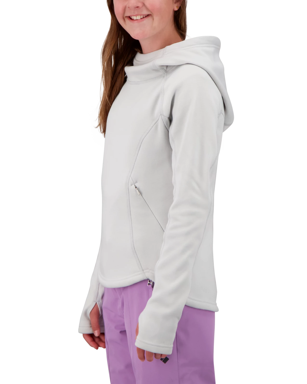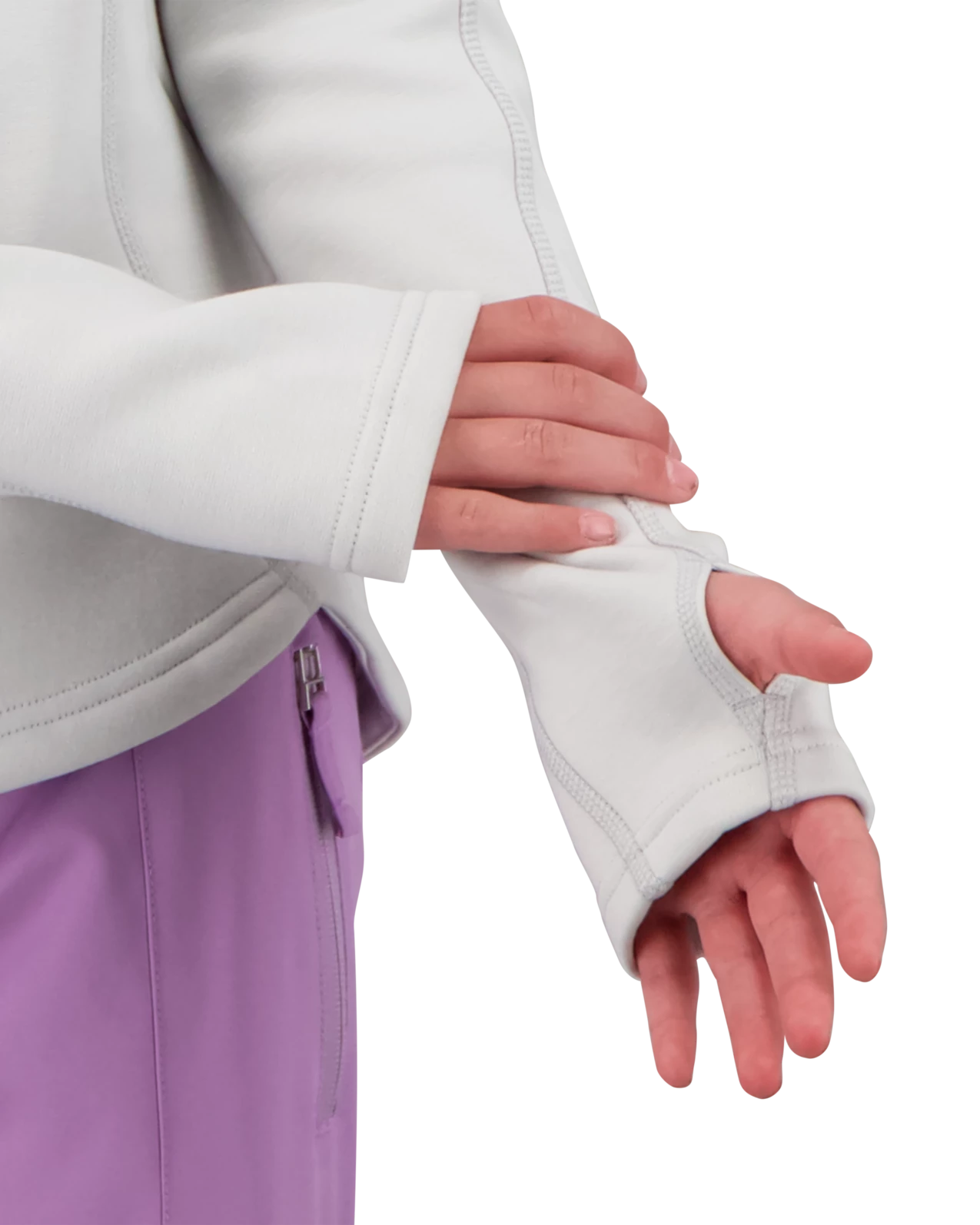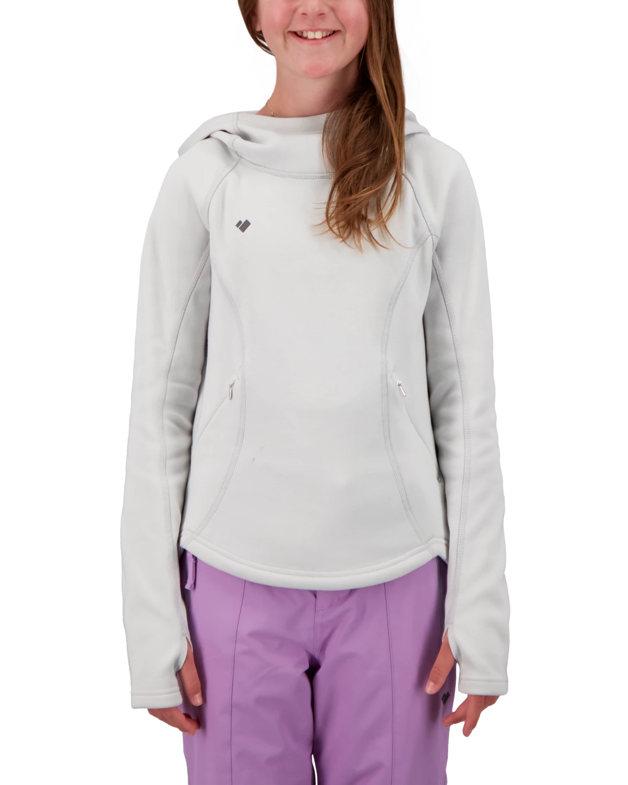 Fitted hoodies are not just as an outer layer but are also becoming quite popular as an underlayer, especially when the active fit allows for layering. Constructed with a polyester stretch blend in a double pique stretch knit. Subtle zippered hand pockets in a kangaroo-style design. Flat seam construction, thumbhole shaped cuffs, and shaped drop hem.