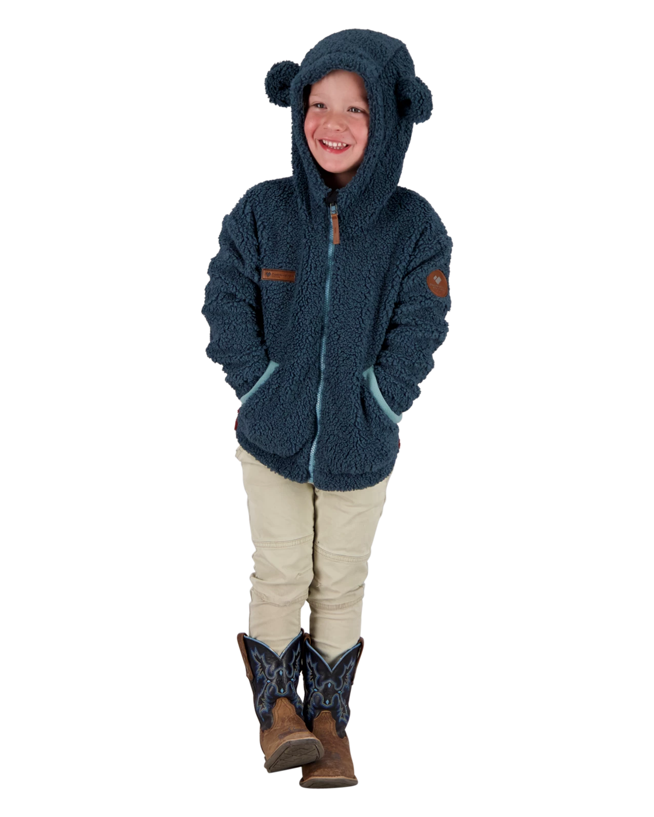 The Shay Sherpa has a personality of its own, with a super soft and warm shearling fleece fabrication and a jersey cotton lining for next-to-skin comfort. Ideal for those cool days and heavy enough to take your little one into winter; featuring handwarmer pockets, reflective trims for safety, and super cute decorative ears.
